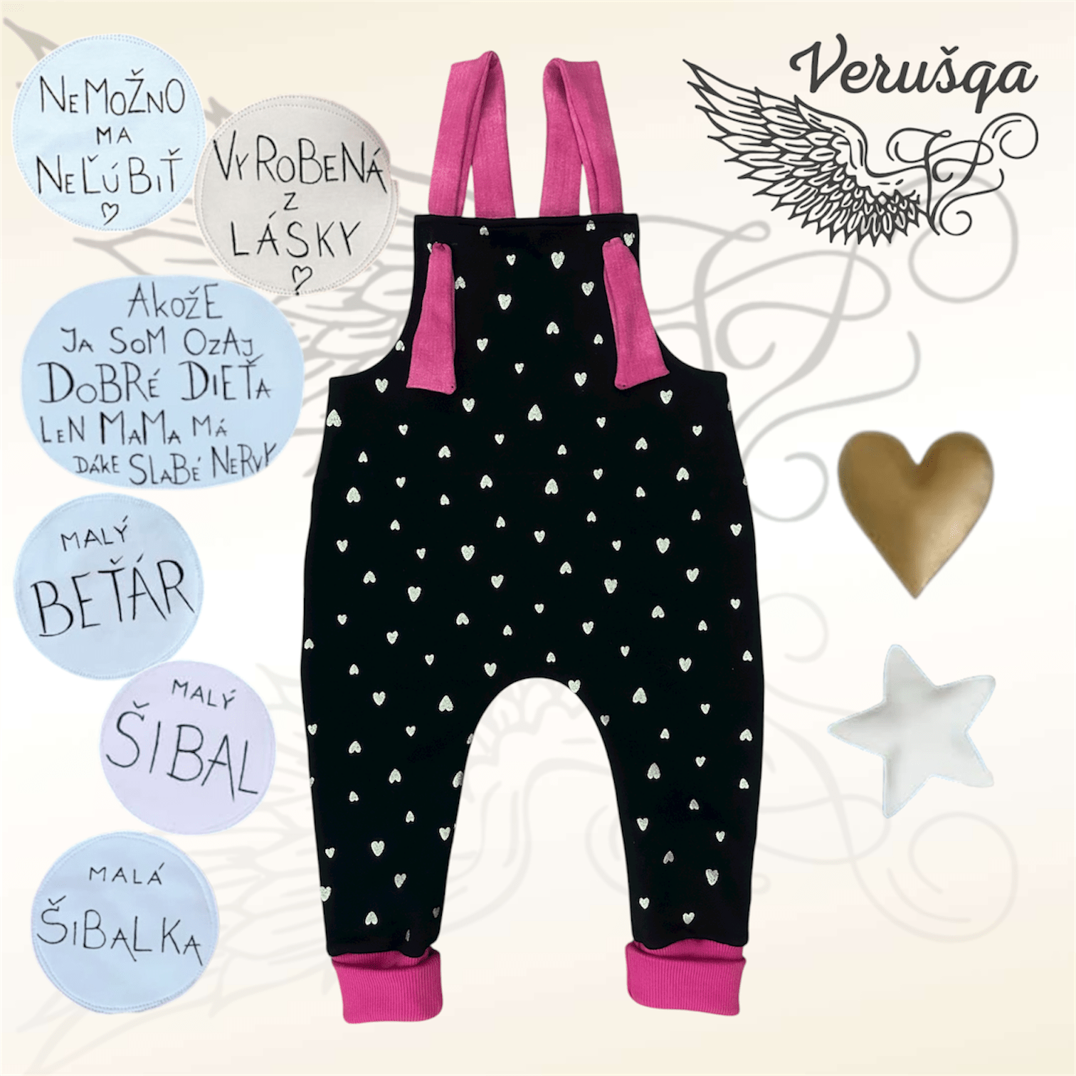 Pri trakáčoch máte na výber niektoré z pískatiek, ktoré sú v ponuke. Iné tvary pískatiek rada vyrobím po dohode. Tak isto máte na výber volánik, či vrecká. V prípade záujmu môžu mať trakáče aj rozopínanie v rozkroku.